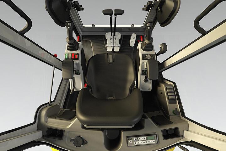 La cabina riprogettata della serie ET propone nuovi standard in termini di pulizia della struttura, sicurezza e comfort dell’operatore grazie ai nuovi interni. Sedile comodo, quadro strumenti ben visibile, interruttori facilmente raggiungibili, poggia braccia regolabili in altezza. I Joystik di comando sono ergonomici e trasmettono il comando in modo diretto e preciso.